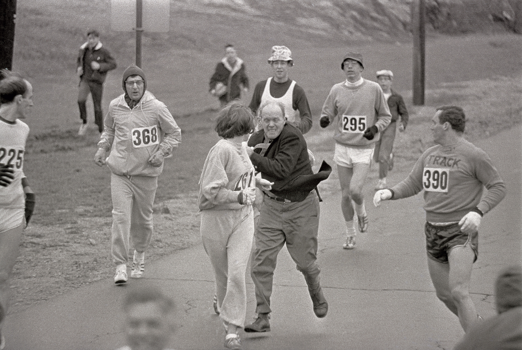El miércoles 19 de abril de 1967 en una tarde nevada, Kathrine Switzer portadora del número 261 haría historia y no lo sabía. Tras el disparo de salida  los primeros kilómetros del maratón parecían fáciles y todo iba de maravilla para Kathrine y sus acompañantes; o al menos eso parecía, puesto que en el kilómetro 6, Jock Semple, oficial de la BAA, se daría  cuenta de que Kathrine, en efecto, era una mujer intentando terminar la prestigiada competencia.